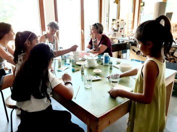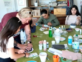 Nina Heilig hat sich spontan und ehrenamtlich bereit erklärt, in einem Workshop alles zu vermitteln. Dabei werden fertige Rohlinge oder selbst Getöpfertes mit speziellen Farben bemalt und anschließend glasiert.