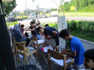 Seit Juni findet regelmäßig am Montag- und Donnerstagabend die EXIT-Gruppe im Projekt Passerelle statt. Das Programm wurde in Norwegen in der Arbeit mit traumatisierten Geflüchteten entwickelt und hilft ihnen bei der Lebensbewältigung. Es ist keine Therapie, sondern zeigt mit stabilisierenden Übungen Möglichkeiten auf, wie mit schlimmen Erfahrungen und Erinnerungen umgegangen werden kann. Die Gruppen werden von Elisabeth Yupanqui Werner und Reinhard Winter angeleitet. Meistens kommen zwischen fünf und zehn Personen, um an der Gruppe teilzunehmen.