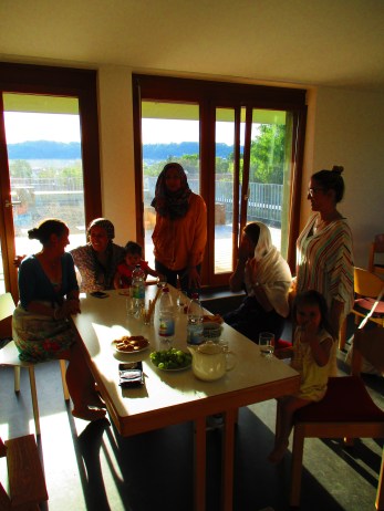 Manchmal haperts mit der Sprache. Beim 14.  Exit-Treffen gab es deshalb etwas Besonderes: zwei Dolmetscherinnen übersetzten die Informationen, die Elisabeth zum Exit-Ansatz gab, und die Fragen und Anliegen der Teilnehmerinnen. Und danach gab es wie immer Obst, Kekse und Getränke zum Ausklang in der Abendsonne.