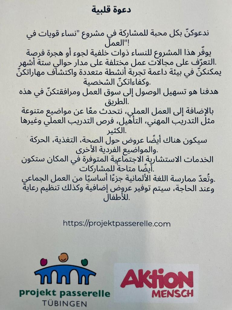 Wir freuen uns sehr, Ihnen den 2. Kurs unseres Projektes „Frauen stark am Werk“ vorzustellen – ein niedrigschwelliges, kostenfreies Gruppenangebot für Frauen mit Fluchterfahrung oder Migrationsgeschichte, das am 14.1.2026 startet.