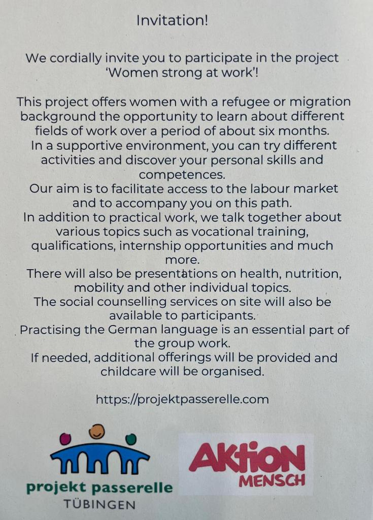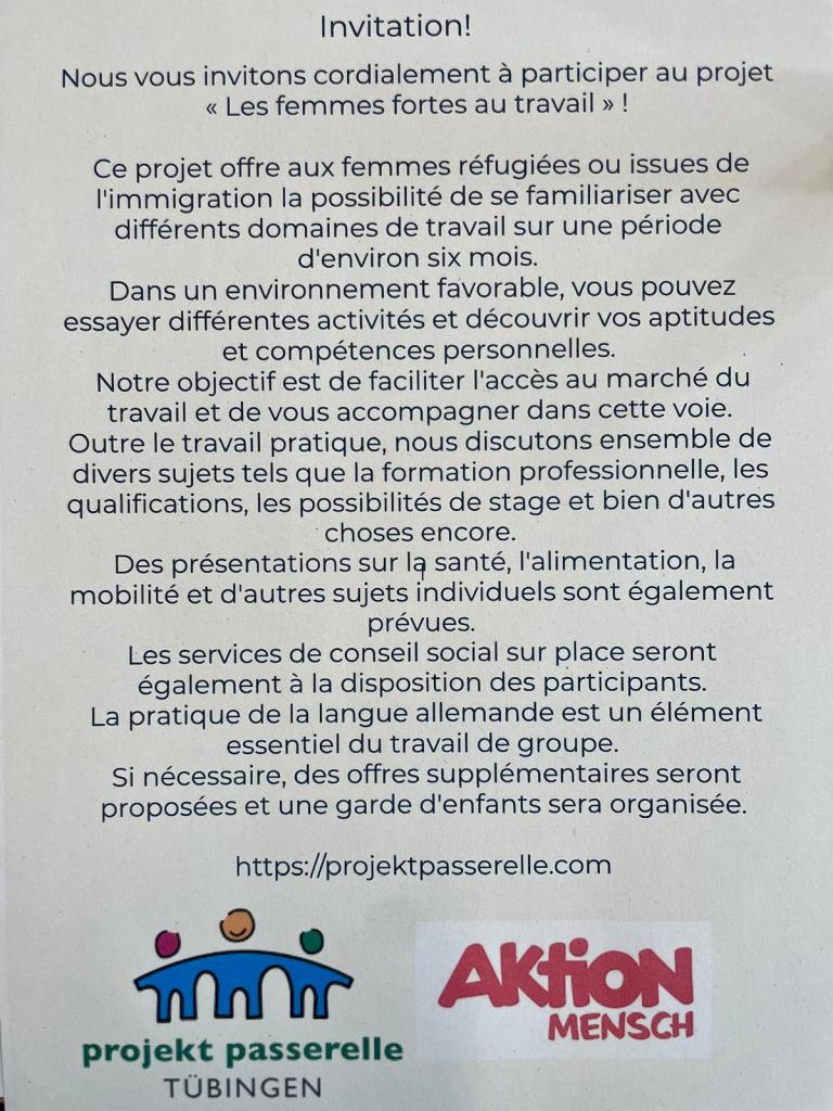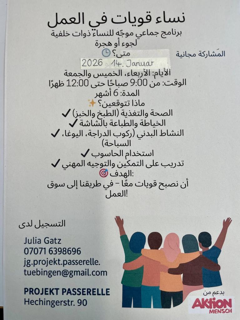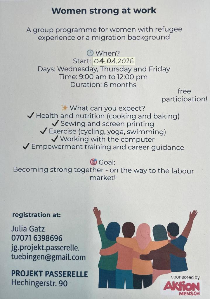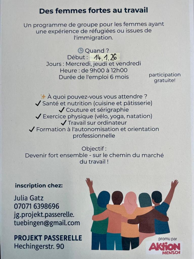 📍 Ort: Details bei Anmeldung: Projekt Passerelle Tübingen e.V., Hechinger Str. 90, 72070 Tübingen